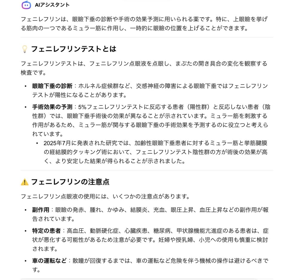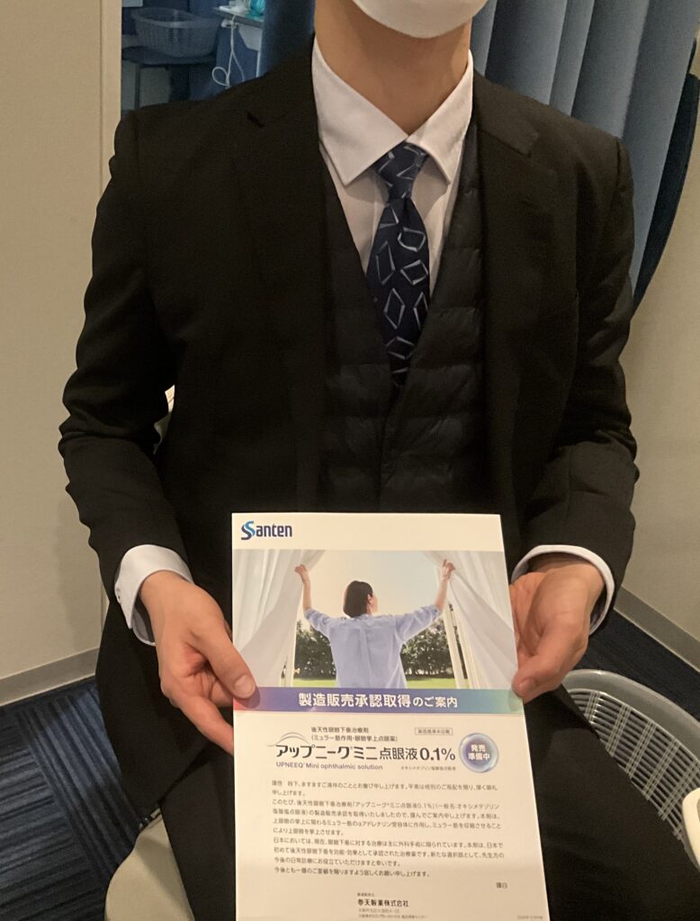 この、眼瞼下垂の新薬(アップニーク)、と すでに我々、眼科医が使い慣れている、 ミドリンP、ネオシネジン点眼、アイファガン(ブリモニジン)という緑内障点眼 の アルファアドレナリン受容体に作用する、という共通点と、違いについて、さらに詳しく情報提供をしてもらえるように情報提供をお願いしておきました(サブタイプが違うのかな?)。